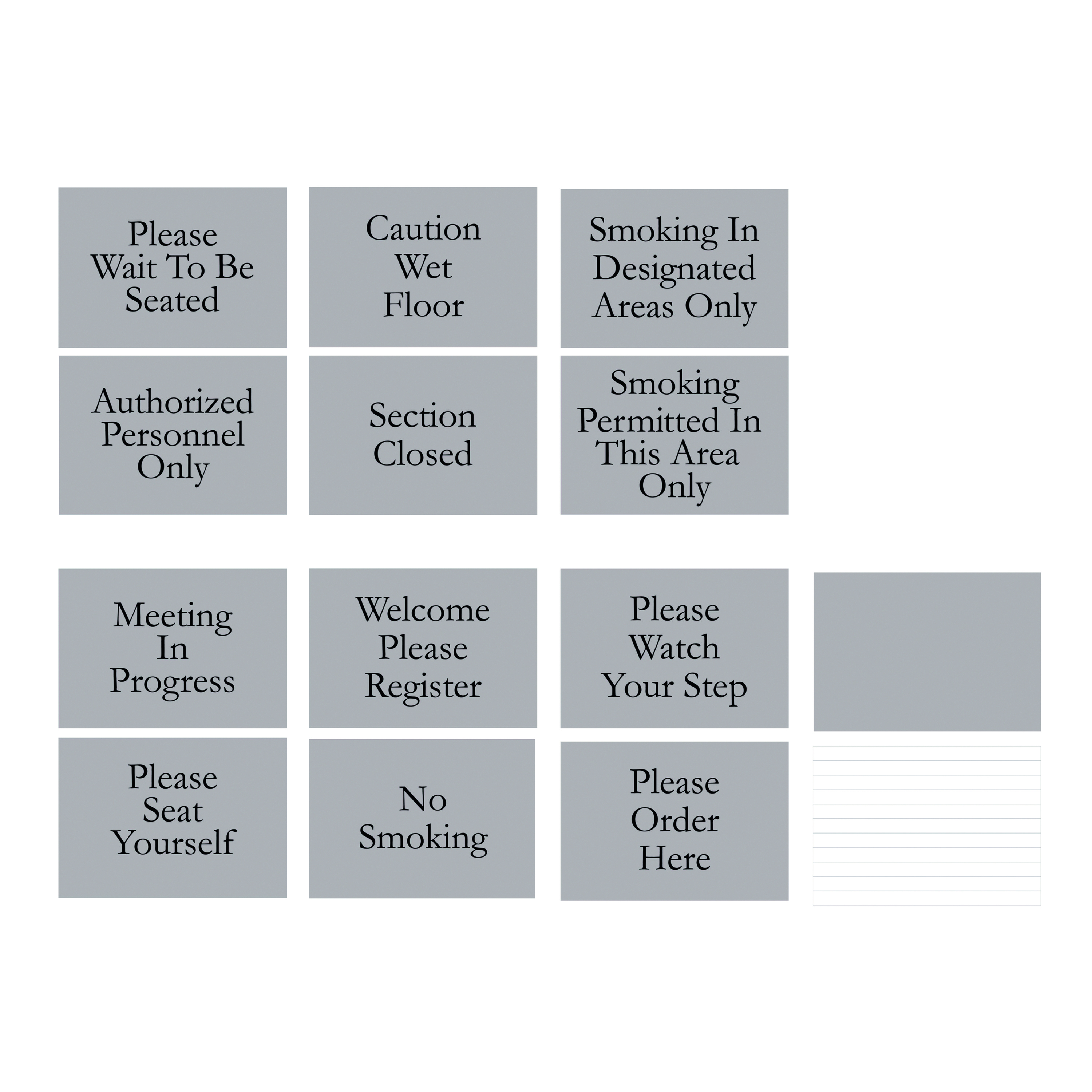 - The Floor Signs with information cards will help you keep "Alert" information and instructions visible where needed