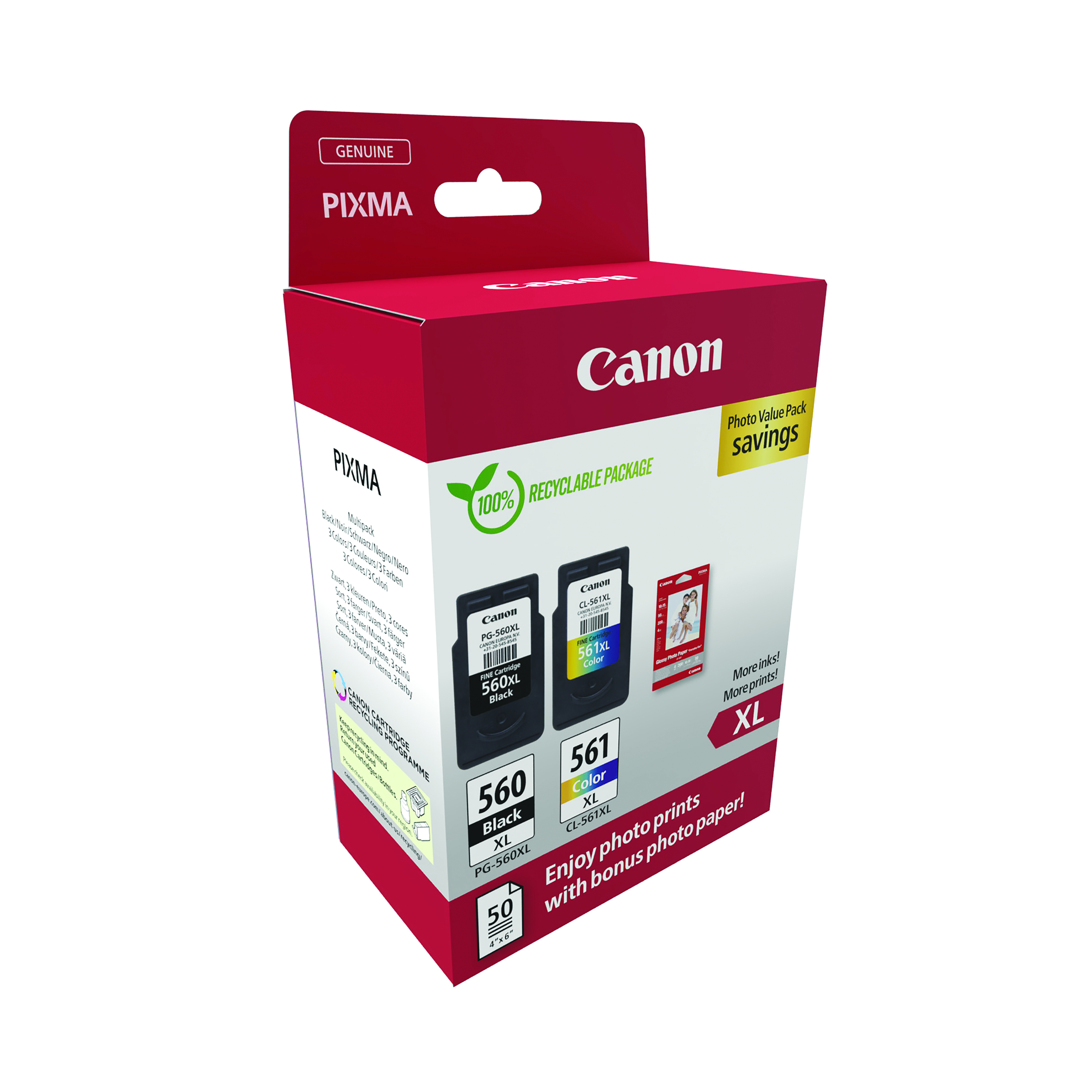 Canon PG-560XL/CL-561XL Ink Cartridges K/CMY + 4 x 6 in Photo Paper Value Pack 3712C008