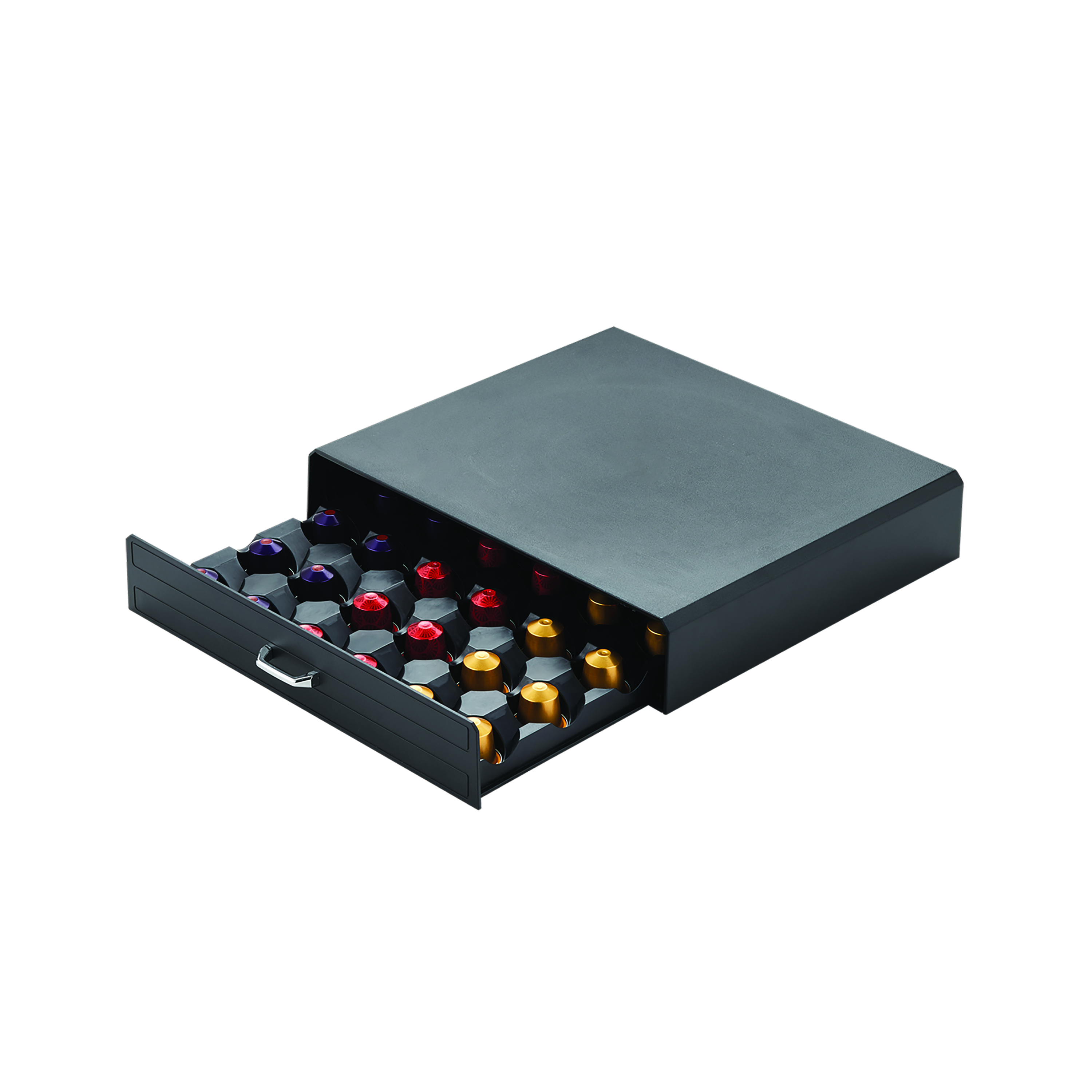 This MyCafe coffee capsule drawer is designed to hold coffee capsules. Ideal for storing and displaying single serve coffee capsules in shared kitchen areas. Supplied in black.